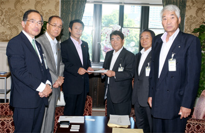 本会からは、藤原忠彦会長(長野県川上村長)をはじめ、谷口友見政調委員(三重県大紀町長)、小城利重政調委員(奈良県斑鳩町長)、中山正隆政調委員(和歌山県有田川町長)の被災3県の会長が参加、政府、国会、民主党、関係府省の幹部に対し要請活動を行いました。