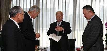 麻生総務大臣(中央)を訪問する常任理事・監事