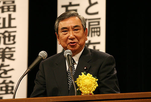 本日ここに、全国町村長大会を開催いたしましたところ、福田内閣総理大臣をはじめ、ご来賓各位には政務ご多端の折、ご臨席を賜り、厚く御礼申し上げます。