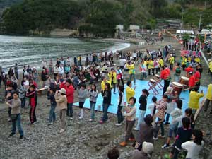 春分の日開催の「夕陽を見る会」は町民の自主運営。
