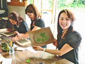 こもれびの里でクラフト体験(プレートづくりの様子)