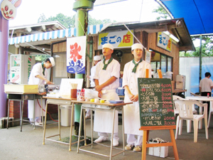 「まごの店」は「多気町五桂池ふるさと村」にある相可高校食物調理科の調理実習施設で、学校が休みの土日祝日や夏休みなどの長期休暇にクラブ活動の一環として運営されています。行列の出来る店として人気を呼んでおり、地域の人もこの高校生たちの頑張りに感動し、大きな勇気をもらっています。