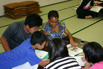 また、ALTも村単独で一名採用している。また、県から2名の加配をいただき、少人数学習できめ細かい指導を行っている。具体的には、小学校では全校全時間、 算数でティームティーチング、3年生からの理科も同様である。中学校でも数学は全校全時間、ティームティーチング、英語もほぼ毎時間同様である。