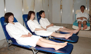 その一つが、三朝医療センターで行われている「ラドン熱気浴」療法です。同センターでは、神経痛やリウマチ、ぜんそくの患者さんへの治療にこの療法が利用されているほか、 三朝温泉に宿泊される一般のお客様でも、気軽に体験していただくことができるようになっています。