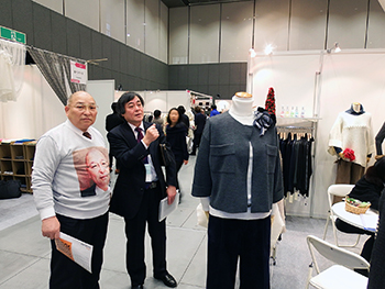 山形緞通及びやまのべニットの東京都内での展示商談会には、町長によるトップセールを実施しています。その際、町長は自身の顔を編んだセーターを着込んで陣頭に立ち、高品質の技術をアピールしています。「まるでプリントのようだ」との声が多く、話題性で地元のマスコミに取り上げられました。この年、山形県では“全国技能五輪2016”が開催され、当町も6職種の会場になり、併催事業の一つに緞通の手織り職人の実演と製品の展示やニットの展示即売を行いました。大盛況と共に全国に高品質な繊維産業を発信することができました。