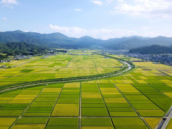 与謝野町は、総面積108・38㎢の範囲に約2万1千人が暮らしており、南北約20㎞の間に町並みや集落が連なる、住民の顔が見え、住民の声を聞くことができる、まとまり良い地域です。大江山連峰をはじめとする山並みに抱かれ、野田川流域に広がる肥沃な平野から、天橋立を望む阿蘇海へ流れるように続く景観は、四季折々に美しい姿を作り出します。春は新緑、夏はひまわり、秋は黄金色の稲穂と紅葉、冬には季節風の「うらにし」による雪と、季節毎で味わいある自然美が堪能できます。