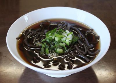 本村を代表する名産品には、鉄道愛好家をはじめ、蕎麦ファンに根強い人気の「音威子府そば」があります。黒くて特徴的な麺はインパクトが大きく、秘伝製法で作られた歴史ある蕎麦は、かつては音威子府駅プラットホームの待合室内の立ち食いそば屋「常盤軒」で提供されていたことから有名になりました。残念ながら、駅立ち食いそば屋は店主が他界されたことにより惜しまれつつ閉店してしまったものの、現在も製造される音威子府そばを求めて、多くの観光客が本村に立ち寄られています。